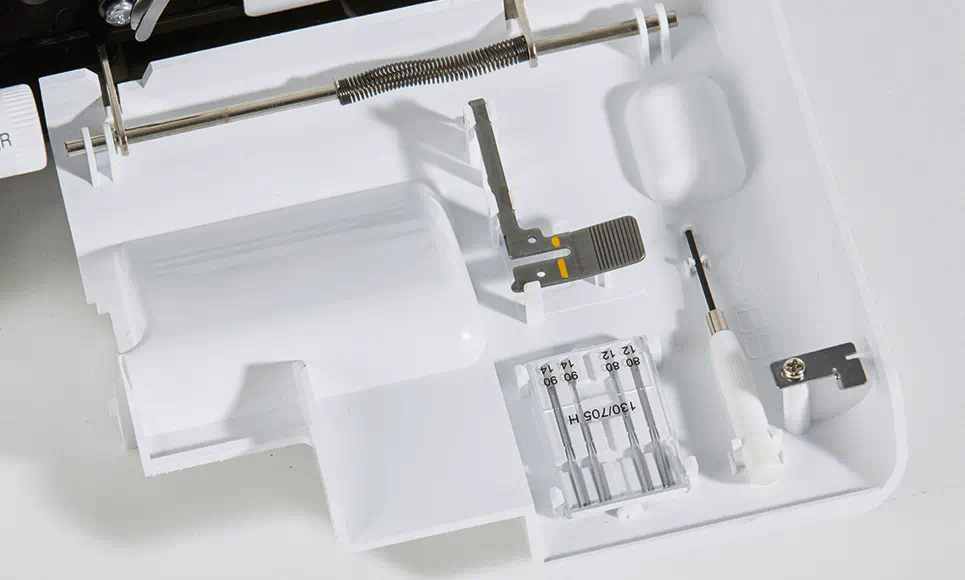 Première surjeteuse de la gamme, elle vous permettra d’effectuer des finitions impeccables sur tous types de tissus (extensibles ou non). Avec son enfilage simplifié et son moteur puissant, elle conviendra très bien aux couturières débutantes. Notice en français.